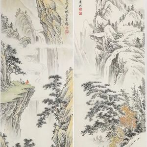 四季山水条屏